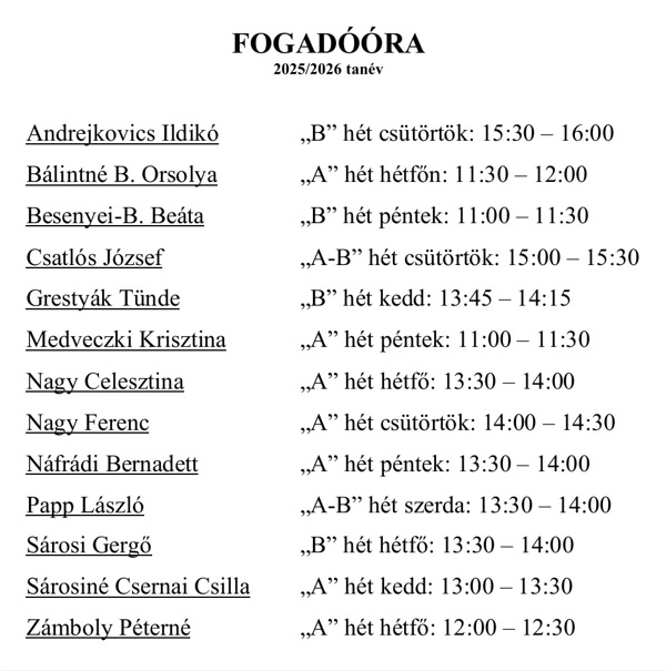 Intézményi Szülõi Szervezet tagjai 2025/2026. tanévben